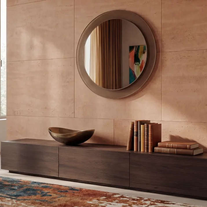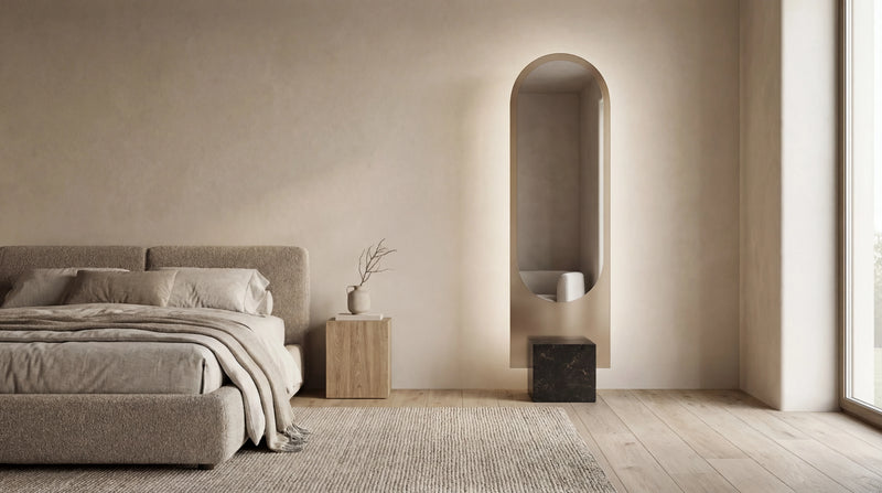 The ALICE in the Gemini Collection introduces a stone base made from Eclos — a sintered stone surface by Cosentino. Denser than marble, more considered than ceramic. Available in two colorways that pair precisely with the Bronze and Graphite back glass.